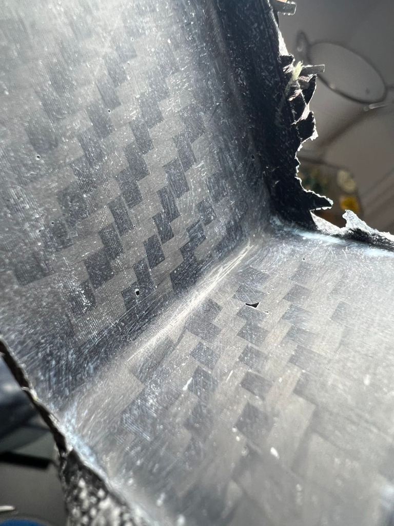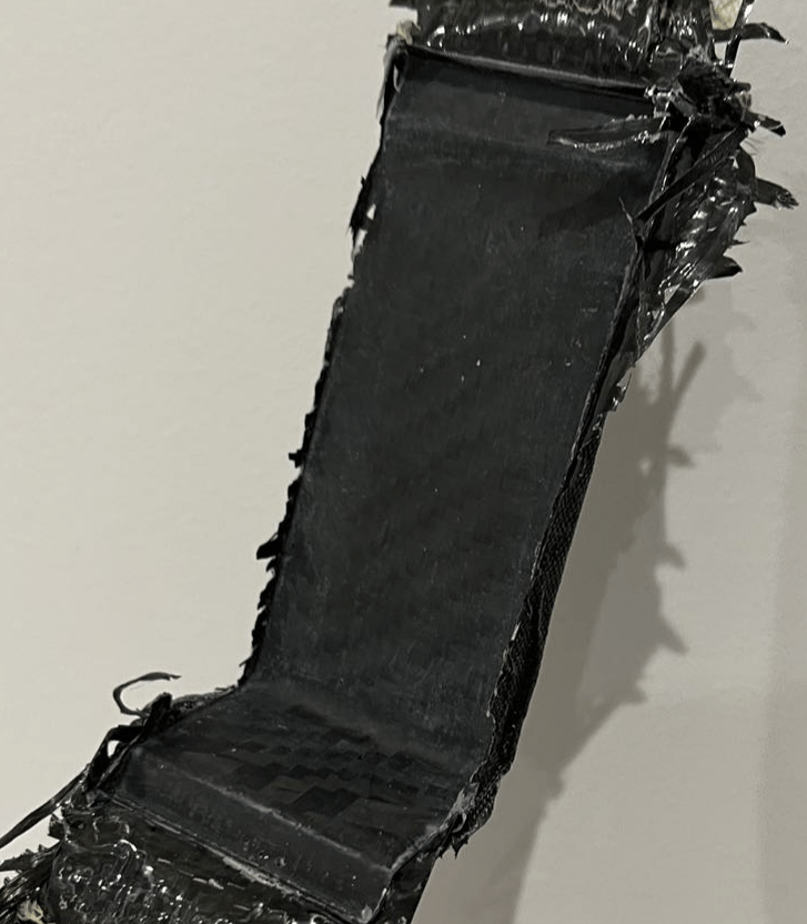The whole layup and the mold were then vacuumed till the landing gear turned into solid. This process is necessary since it can help remove the extra epoxy making the landing gear have more evenly distributed epoxy layers (although it was still a little bit bumpy as a result) and guaranteeing all carbon fiber layers are close to each other to have high strength and stiffness landing gear structure.
