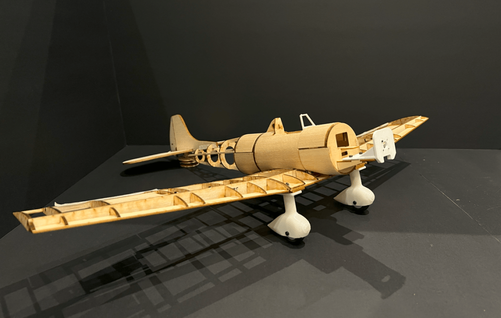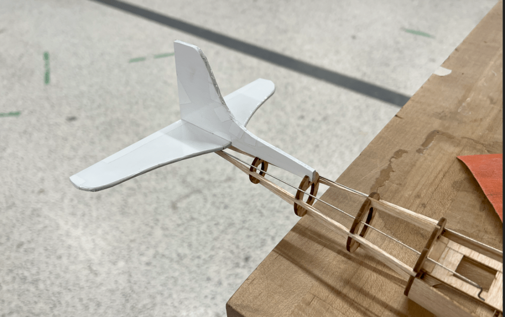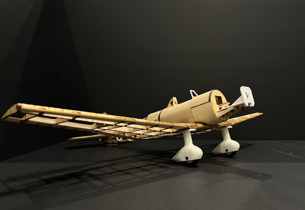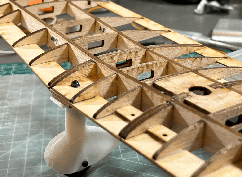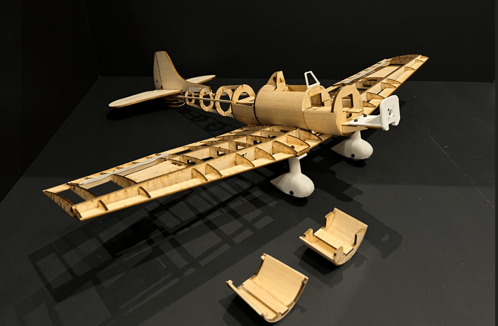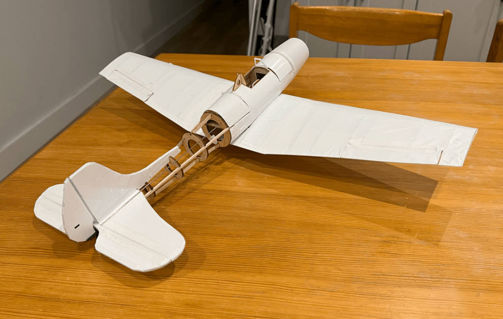 The skin of the aircraft used monokote which is a heat-shrink material and is commonly used for most RC balsa planes. Both the heat gun and iron were used to make sure the monokote stuck to the wooden structure well.